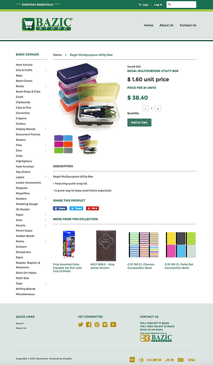 Website designed for Bazic Products. The site is a customized Shopify ecommerce site for online B2B sales