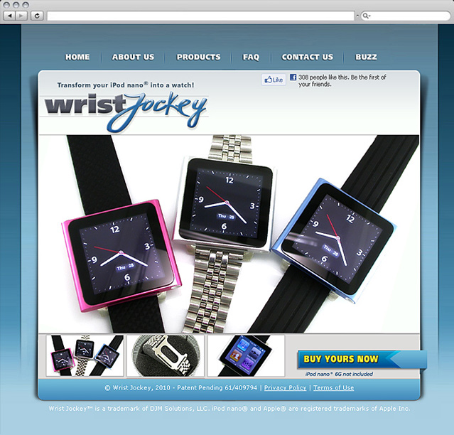 Website designed for Los Angeles based company that designs and manufactures wrist bands for ipod Nanos.